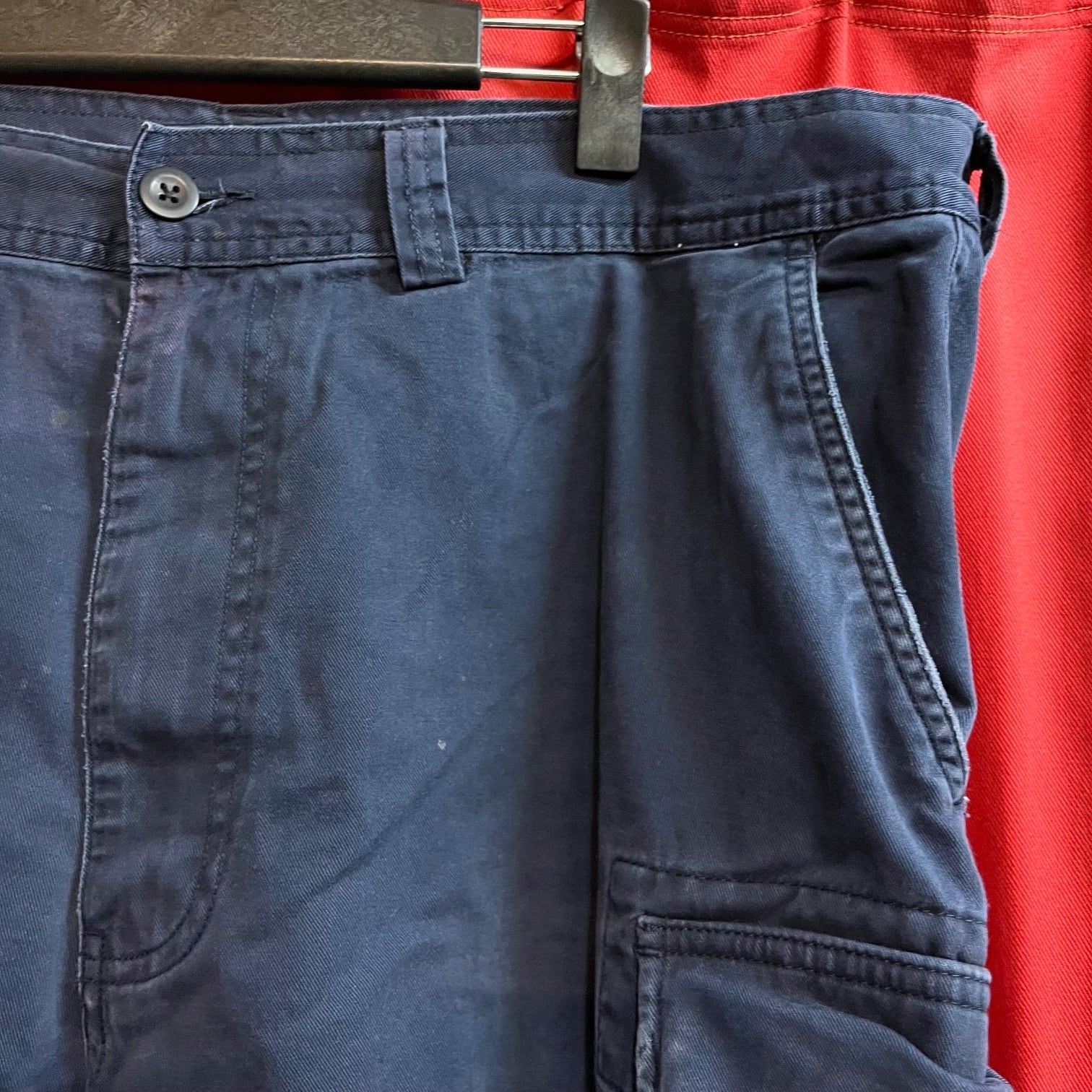 フロントに所々汚れ(写真4、5枚目)、バックの右ポケット辺りに汚れ(写真8枚目)がございます。