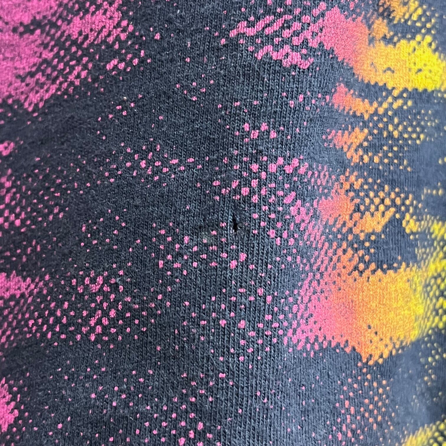 フロントの左肩に薄っすらと汚れ(写真4枚目)、フロントに2か所のピンホール(写真5、6枚目)、バックの左肩辺りに色抜けとピンホール(写真7枚目)がございます。